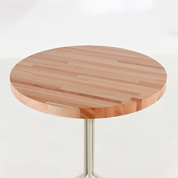Base de mesa de hierro de caño circular. Tapas de madera, laminado de plástico o chapa.
